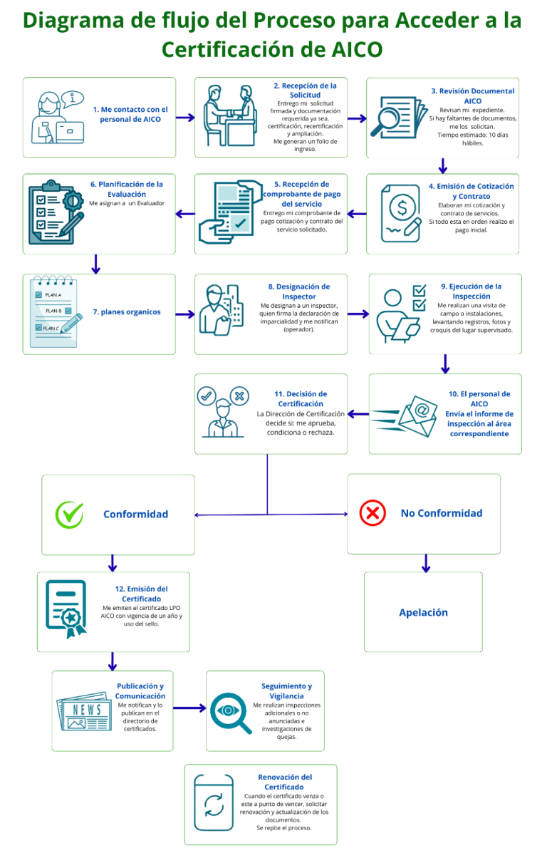 En AICO, guiamos a los operadores en cada etapa del proceso de certificación orgánica conforme a la Ley de Productos Orgánicos de México y la norma ISO/IEC 17065. Nuestro compromiso es ofrecer un procedimiento claro, transparente y riguroso, asegurando que cada producto certificado cumpla con los más altos estándares de calidad, trazabilidad y sostenibilidad.